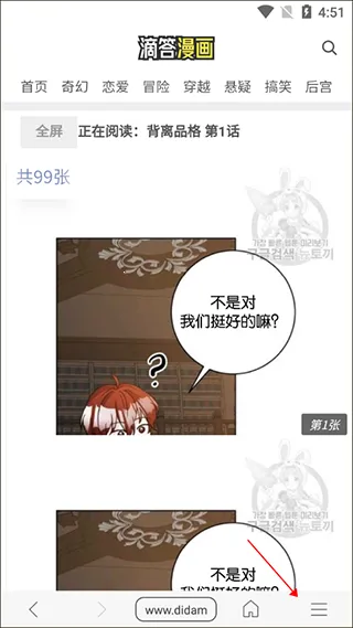 4、进入漫画的页面右下方“列表图标”点击进入;