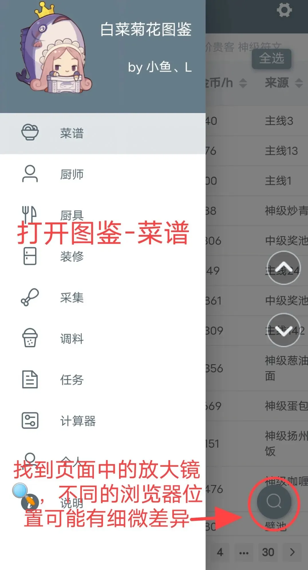 白菜菊花计算器是游戏辅助工具,有庞大图鉴系统。每周五厨神大赛可自动匹配最佳阵容,还能查贵客偏爱料理。重要记录可保存恢复,界面清晰易上手,有图鉴管理等功能,亮点多多,解答常见问题。