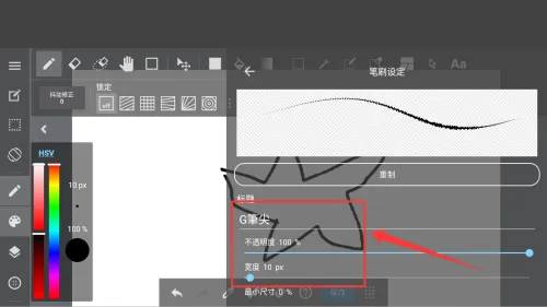 4、 选择下面的笔尖拉动透明度活跃大小。