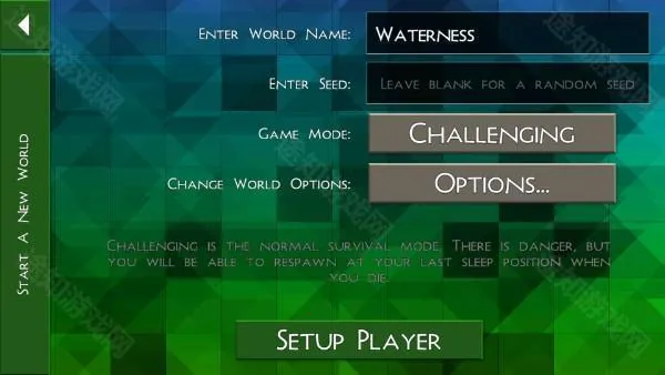 4、点击“new world”后,我们需要对创建世界,进行自定义的设置,设置完成后点击“setup player”